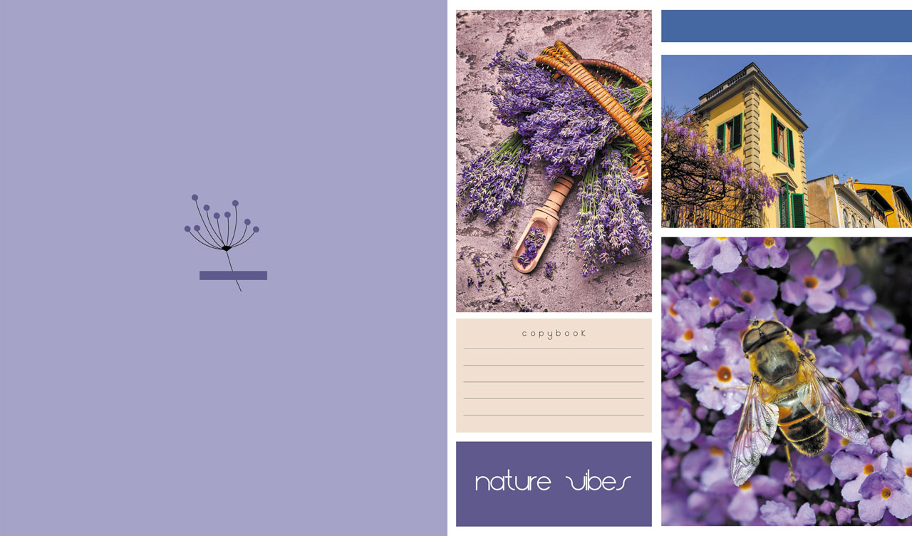 1. Three-block collage of Nature Vibes with a light purple side panel backdrop