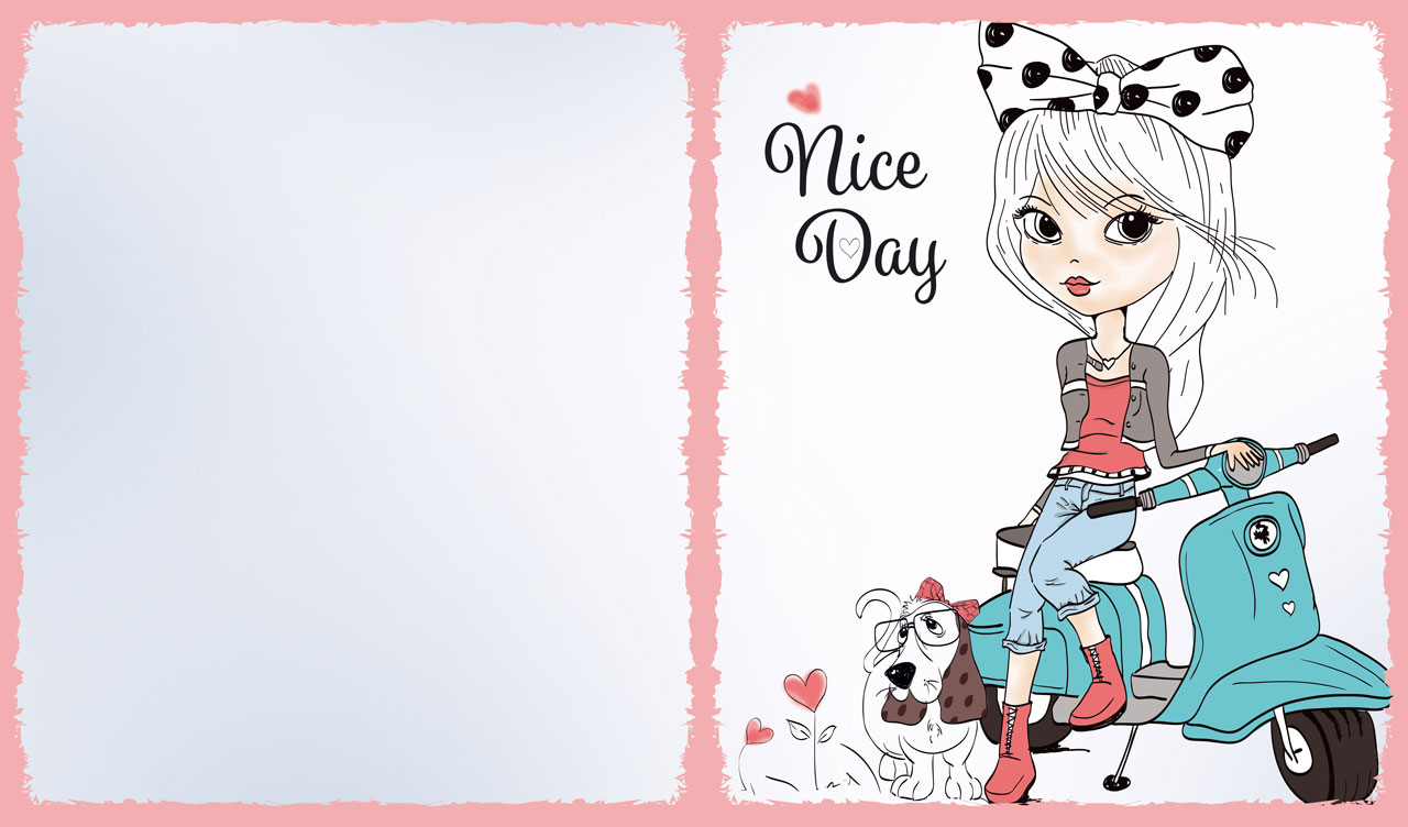 1. Cute girl in a blue dress and a cat on a white backdrop with grunge edges 2. Cute girl with glasses and a cat on a white backdrop with grunge edges 3. Cute girl on a teal scooter and a dog on a white backdrop with grunge edges 4. Cute girl with a camera and a cat on a white backdrop with grunge edges 5. Cute girl with birds and a cat on a white backdrop with grunge edges