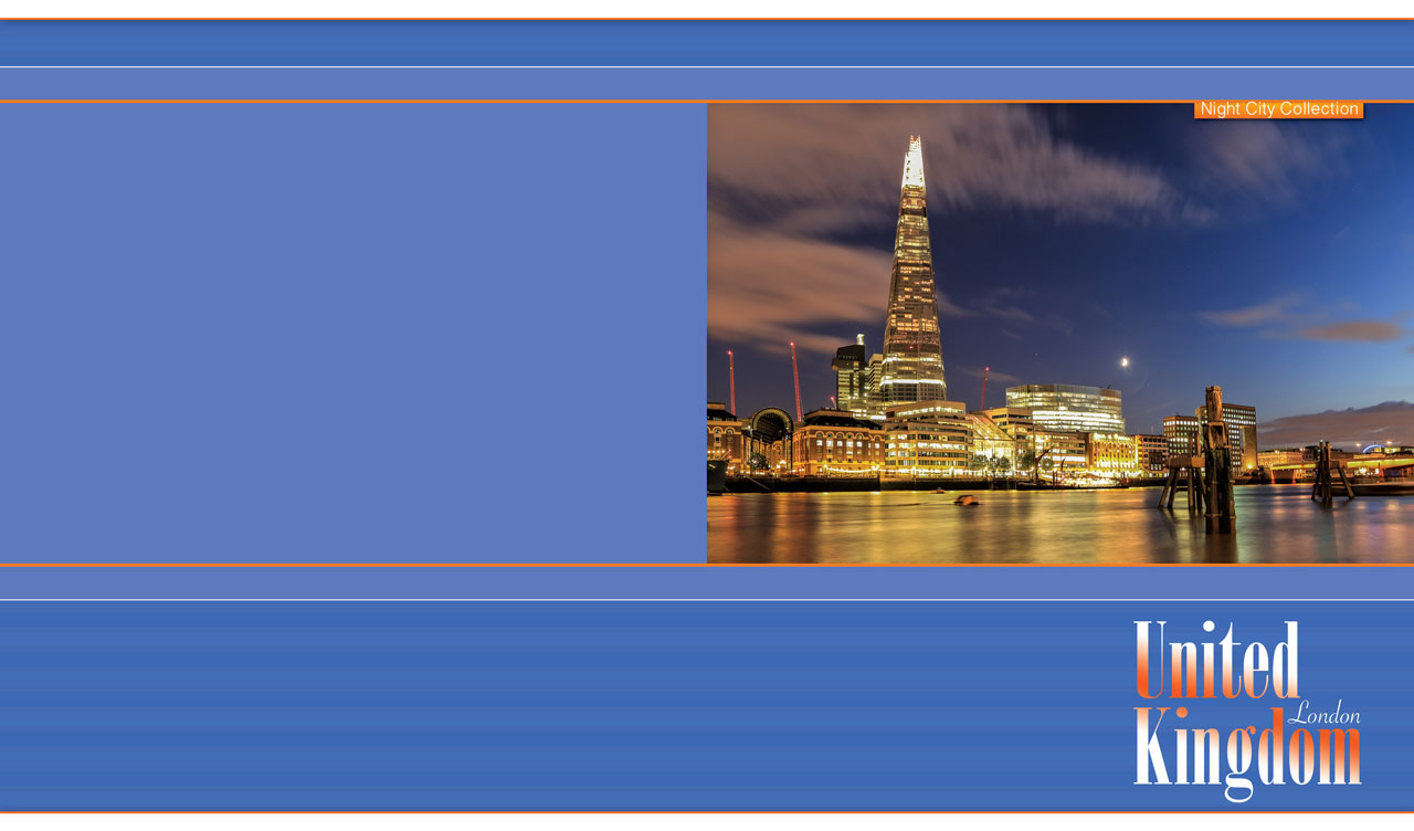 1. City of Arts and Sciences in Valencia at dusk against a violet backdrop 2. The Oakland Bay Bridge in San Francisco at night on a yellow-orange backdrop 3. The illuminated Shard skyscraper in London at dusk on a dark blue backdrop 4. Illuminated buildings along the Grand Canal in Venice at dusk on a blue backdrop