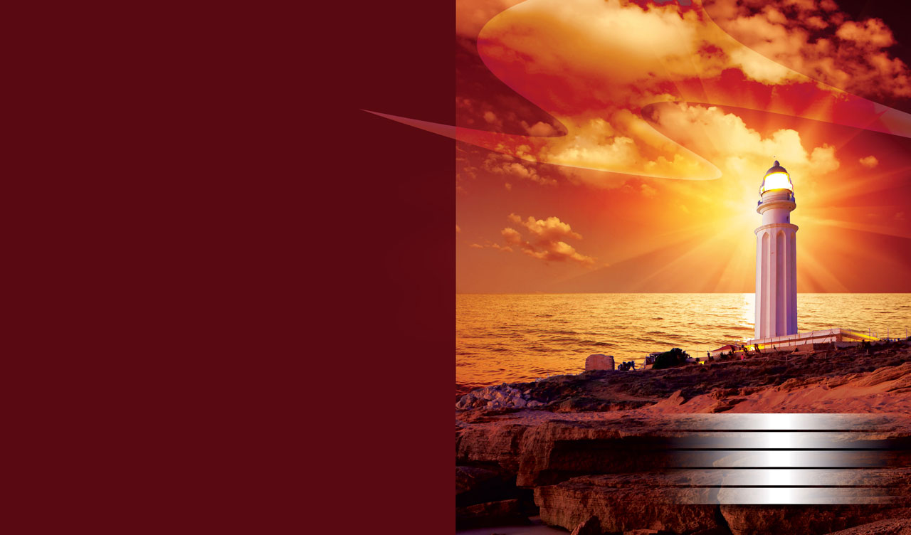 1. White lighthouse by the sea in the orange sunset beneath the evening sky 2. White lighthouse in a small port town shines in the silver moonlight 3. White lighthouse on a brown hill by the sea beneath the orange-red evening sky 4. Red lighthouse on a ice-covered bridge shines in the silver moonlight