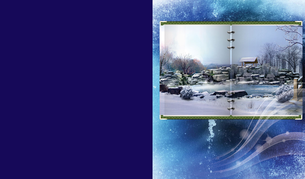 3. River shore with a pier and pergola, wooden boats with frosty trees on dark blue