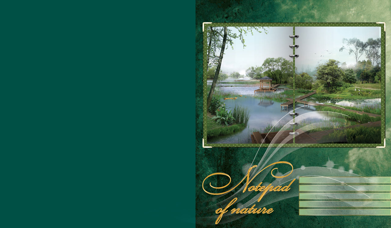 2. Lake with a pergola and wooden pavements with ducks family on green
