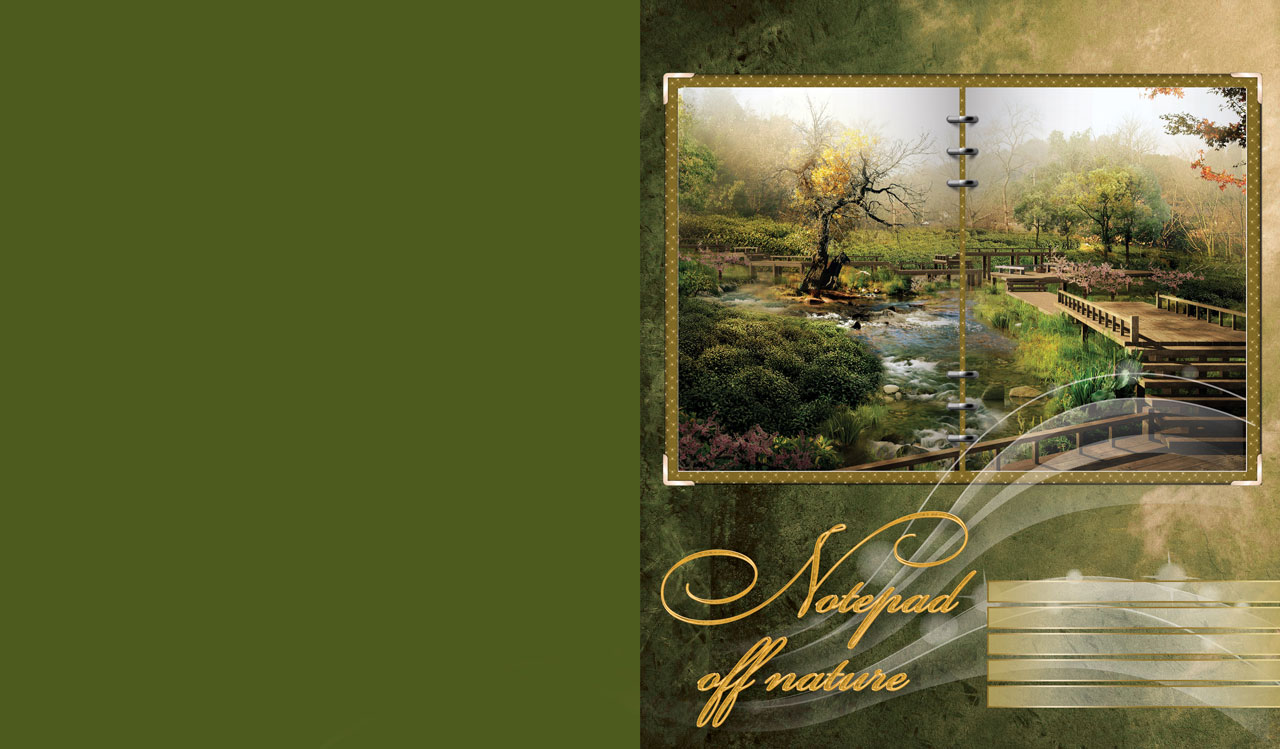 5. Lake with a stone arch bridge, green trees and pink flowers on light blue