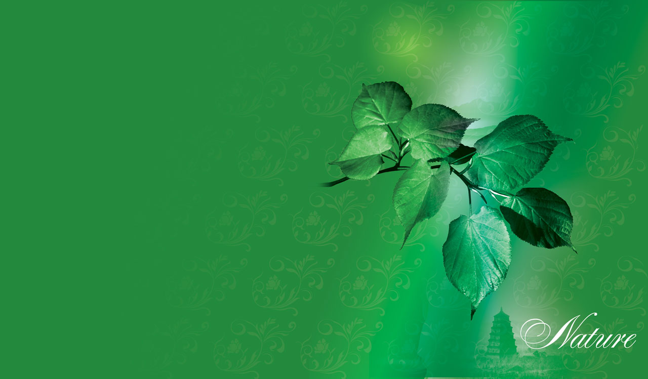2. Beautiful summer leaves and oriental temple on a green background