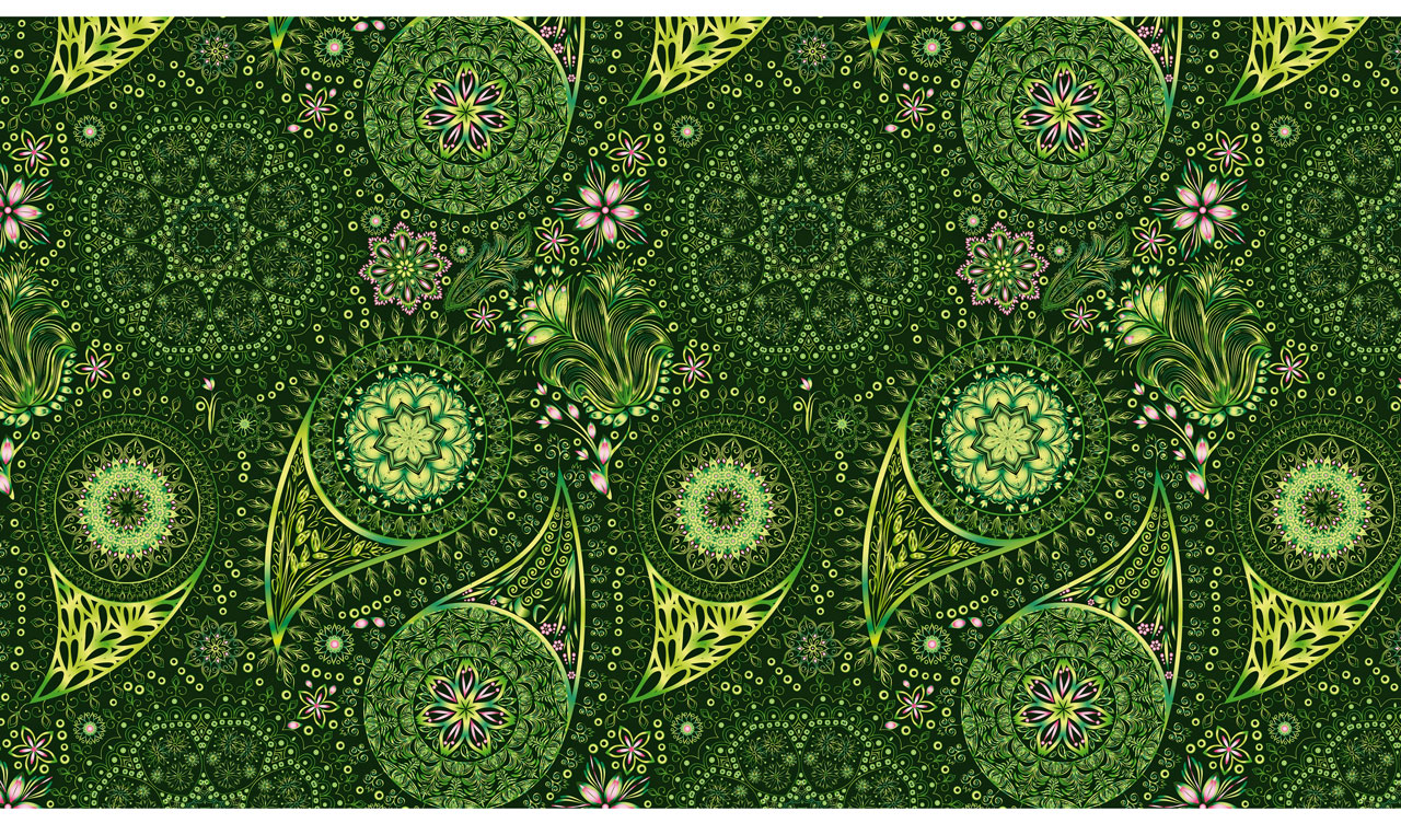 1. Seamless bright ethnic paisley pattern in green colors