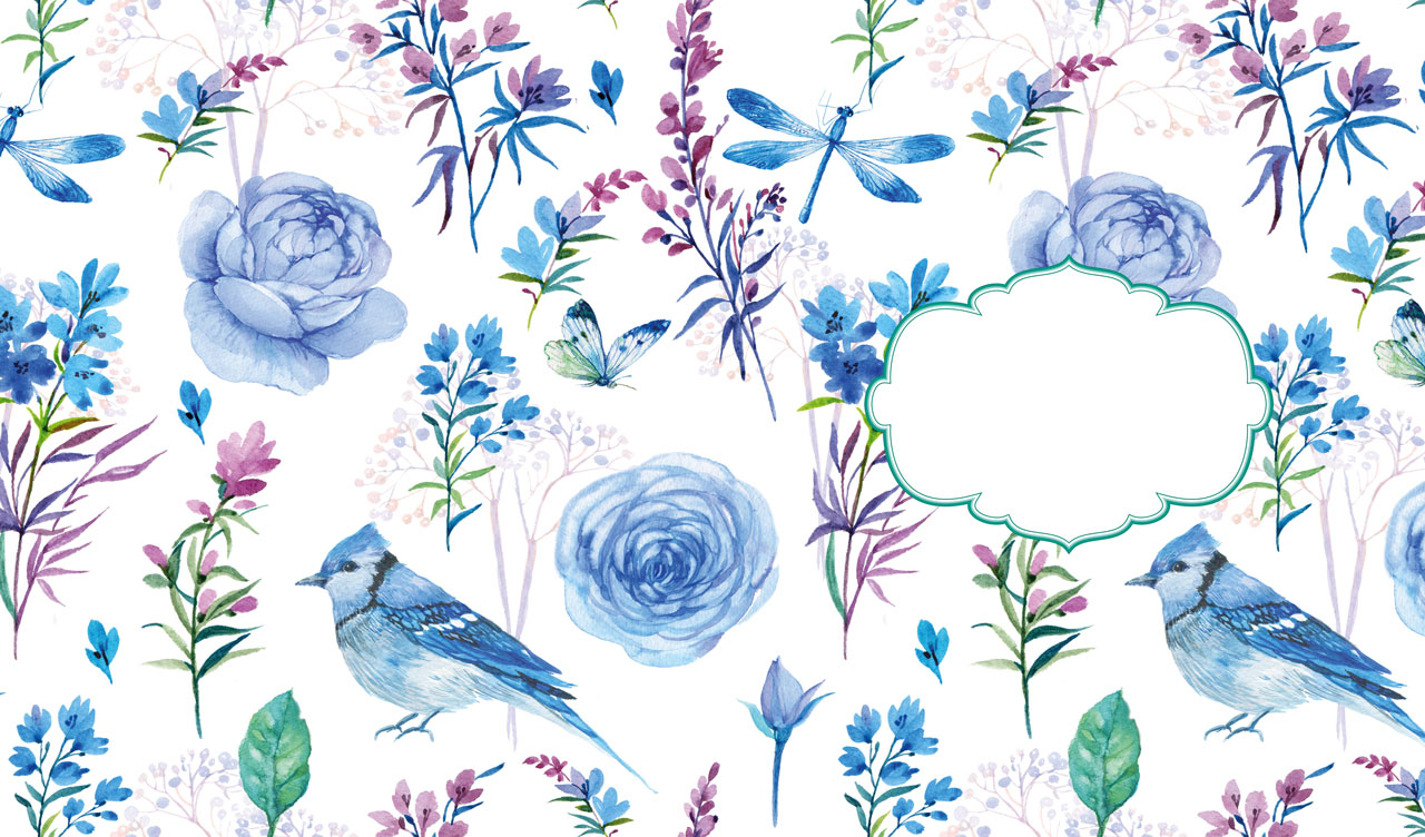 1. Seamless floral pattern of watercolor peonies and bluebirds on white 2. Seamless floral pattern of watercolor cornflowers and butterflies on white 3. Seamless floral pattern of blue watercolor chrysanthemum and peonies on white 4. Seamless floral pattern of blue watercolor roses, dragonflies and jays on white 5. Seamless floral pattern of watercolor peonies and hummingbirds on white