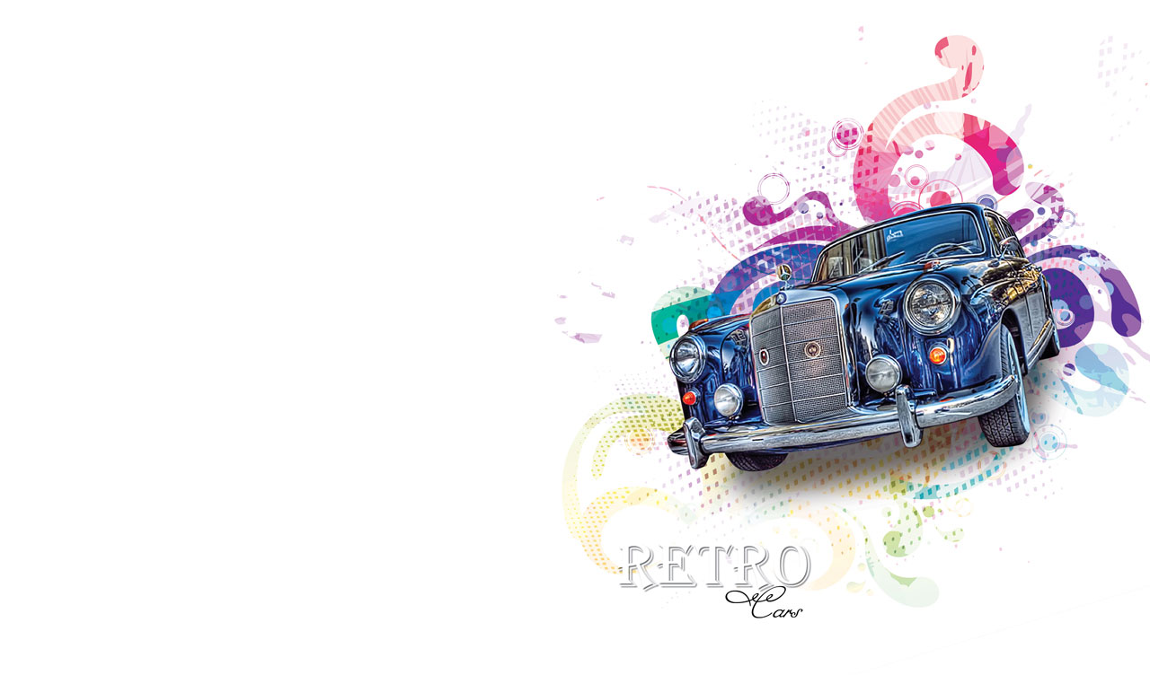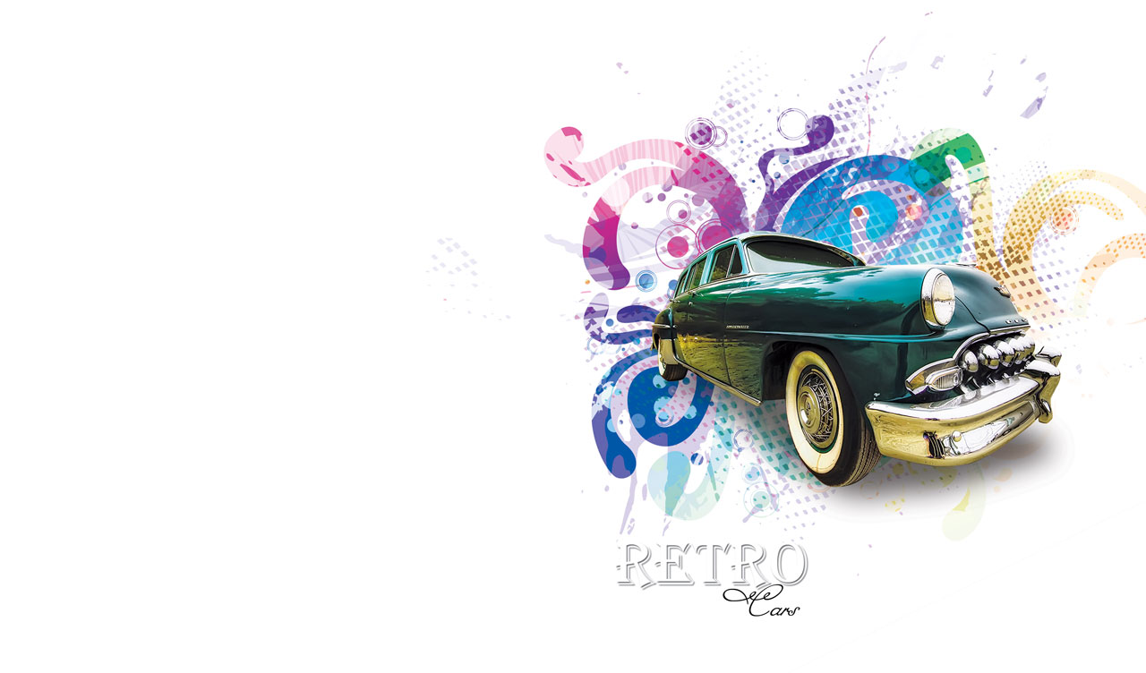 1. Dark teal metallic retro car on a white backdrop with a multicolored stencils 2. Navy blue metallic retro car on a white backdrop with a multicolored stencils 3. Red orange metallic retro car on a white backdrop with a multicolored stencils 4. Green metallic retro truck on a white backdrop with a multicolored stencils