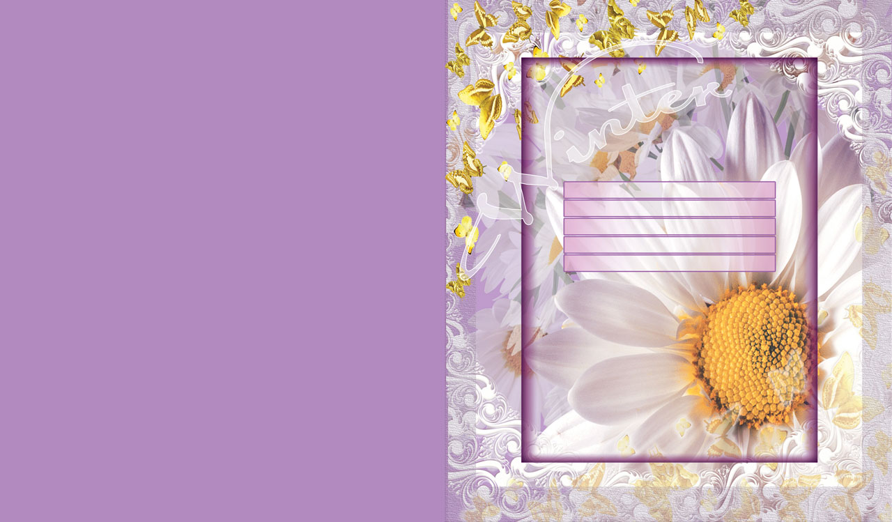 4. Winter theme buds of a white Chamomile in a white vertical ornamental frame of golden butterflies