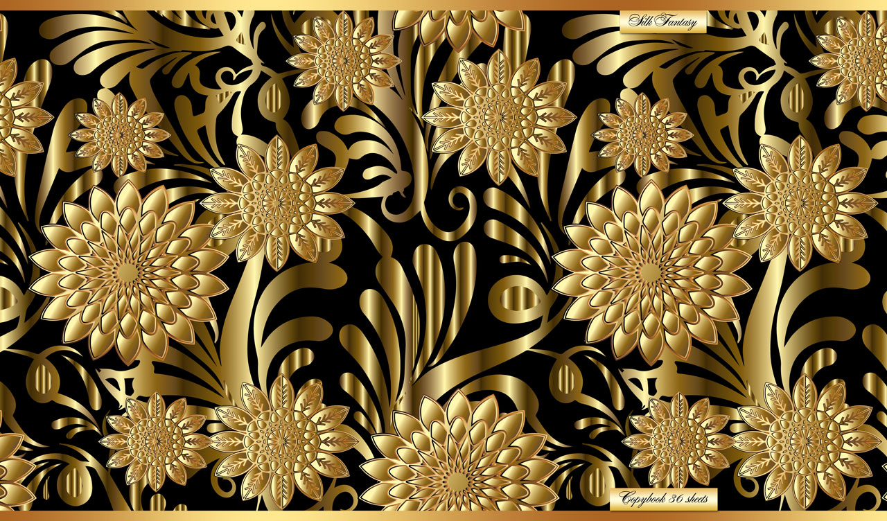 1. Seamless floral pattern of colorful flowers on a black backdrop 2. Seamless floral pattern of white and gold sunflowers on a black backdrop 3. Seamless floral pattern of red and white sunflowers on a black backdrop 4. Seamless floral pattern of white sunflowers on a white silk backdrop 5. Seamless floral pattern of golden sunflowers on a black silk backdrop