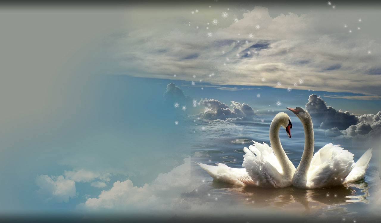 1. Golden-maned lion lies on the ground watching snowflakes fall from the sky 2. A pair of white swans in a pond watching snowflakes fall from the sky 3. Formidable tiger jumps out of heaven under the falling snowflakes 4. Joyful dolphin jumps out of the sparkling water under the falling snowflakes