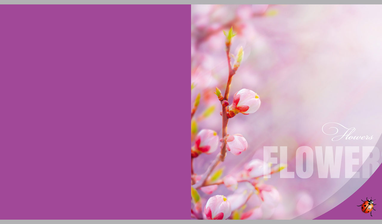 Close up of pastel pink cherry buds in the sunlight against a blurry pink background with a lady bug on a purple monochrome.