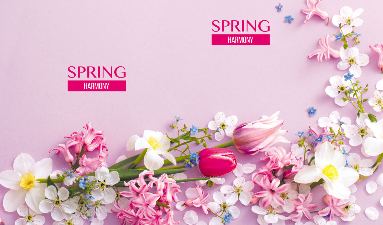 4. Floral arrangement with tulips, daffodils, hyacinths on pastel purple