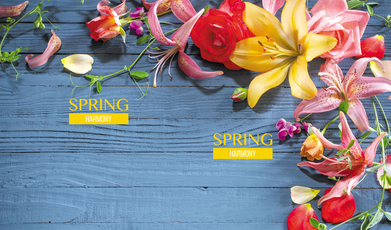 5. Floral arrangement with lilies and roses rustic blue wooden planks