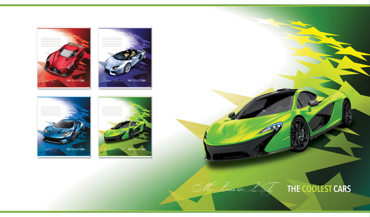 1. Coolest satin blue sports car on a starry track against blue to white gradient 2. Coolest satin red sports car on a starry track against red to white gradient 3. Coolest metallic sports car on a starry track against violet to white gradient 4. Coolest neon lime sports car on a starry track against green to white gradient