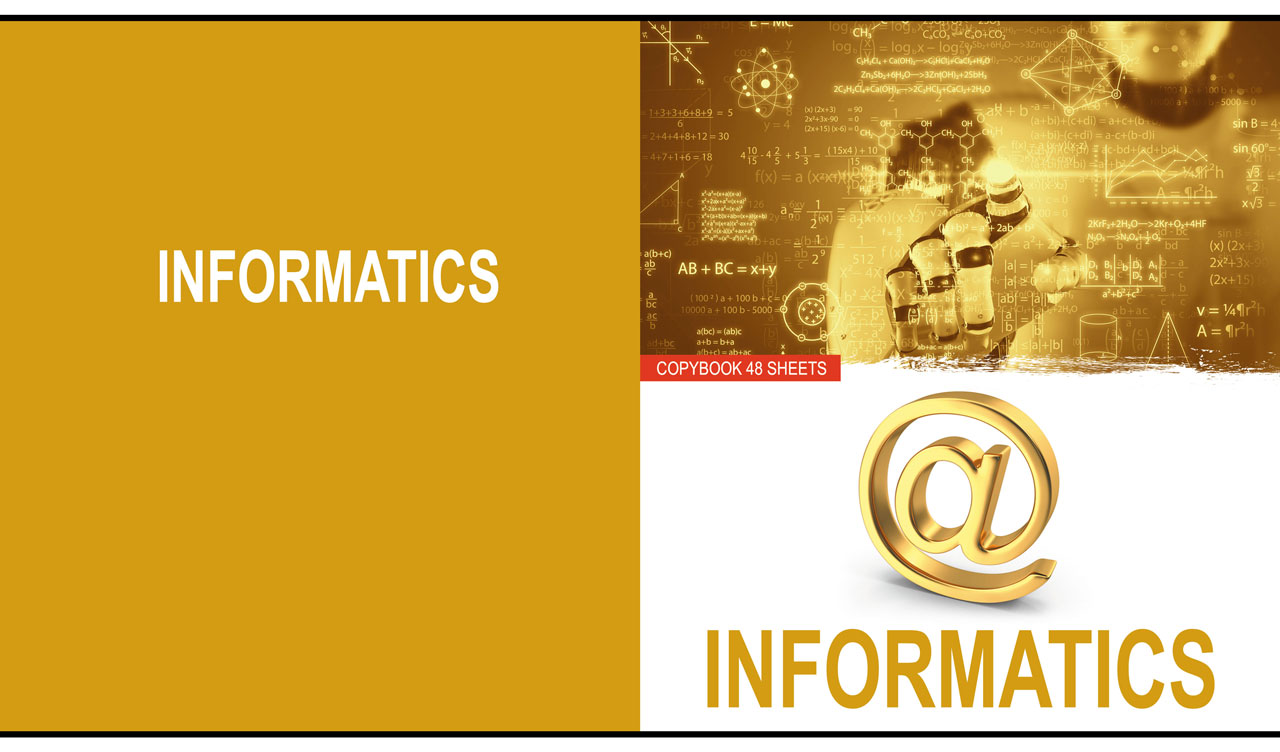 3. 3D at symbol on a white and ocher backdrop of an Informatics notebook