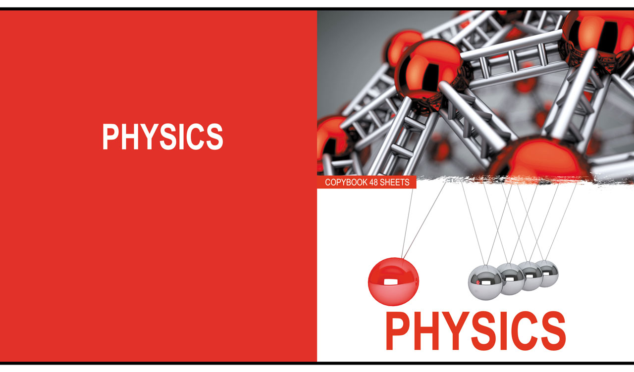 5. 3D Newton’s cradle on a white and red backdrop of a Physics notebook