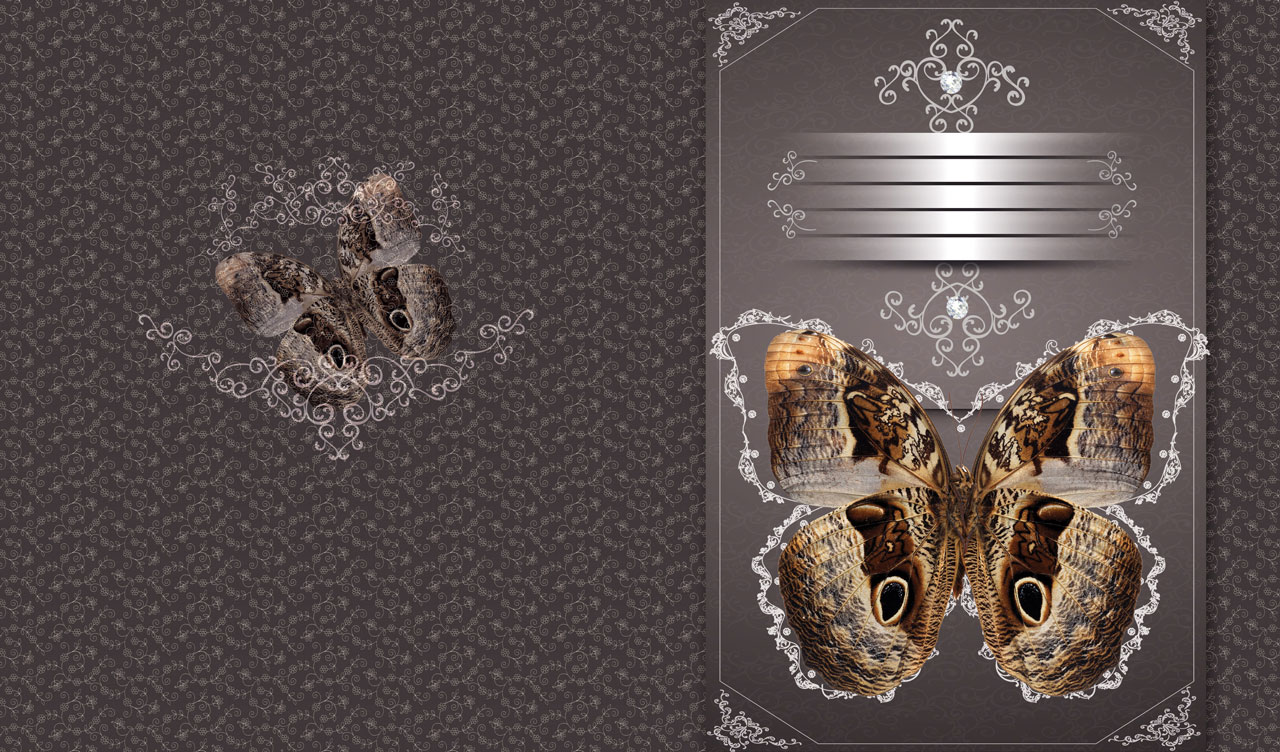 | Series name: | Butterflies ornated with monograms | Top views against swirl seamless background |