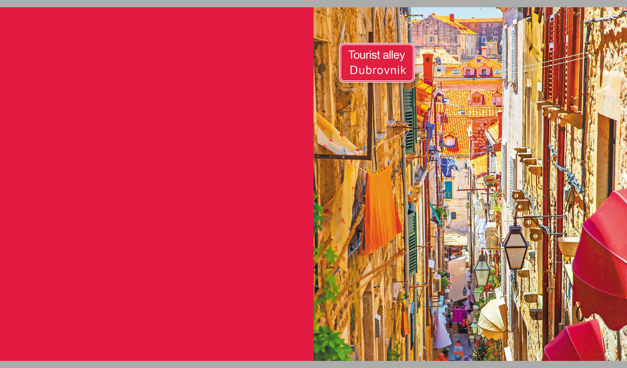 4. An atmospheric traditional alley in Dubrovnik on a hot pink backdrop