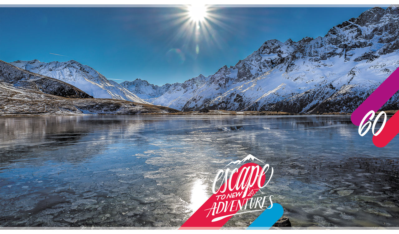 1. Arctic island scenery with orange rocks against a blue sky at sunrise 2. Autumn scenery with tall tress and green field along the road against a blue sky 3. Winter scenery with melting ice lake in morning sunlight 4. Autumn scenery with reeds and trees on the river bank under the fluffy clouds 5. Summer scenery with spruce trees along the shore of a mountain lake
