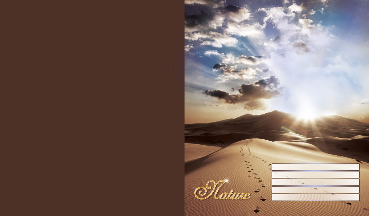 Two pair of footprints on the sand of a quiet desert and the sun rises behind the rolling dunes on a dark brown background.