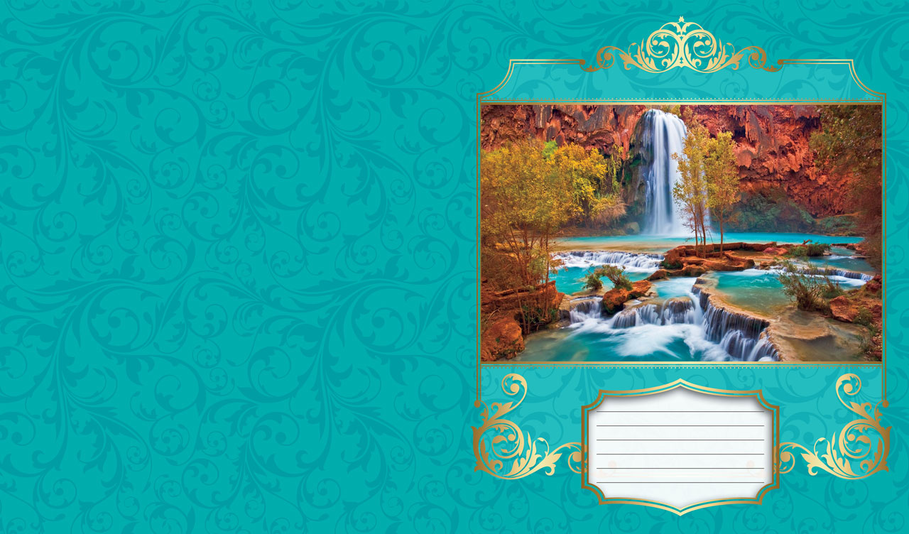 6. Landscape of Havasu Falls of the Grand Canyon in Arizona on a teal backdrop