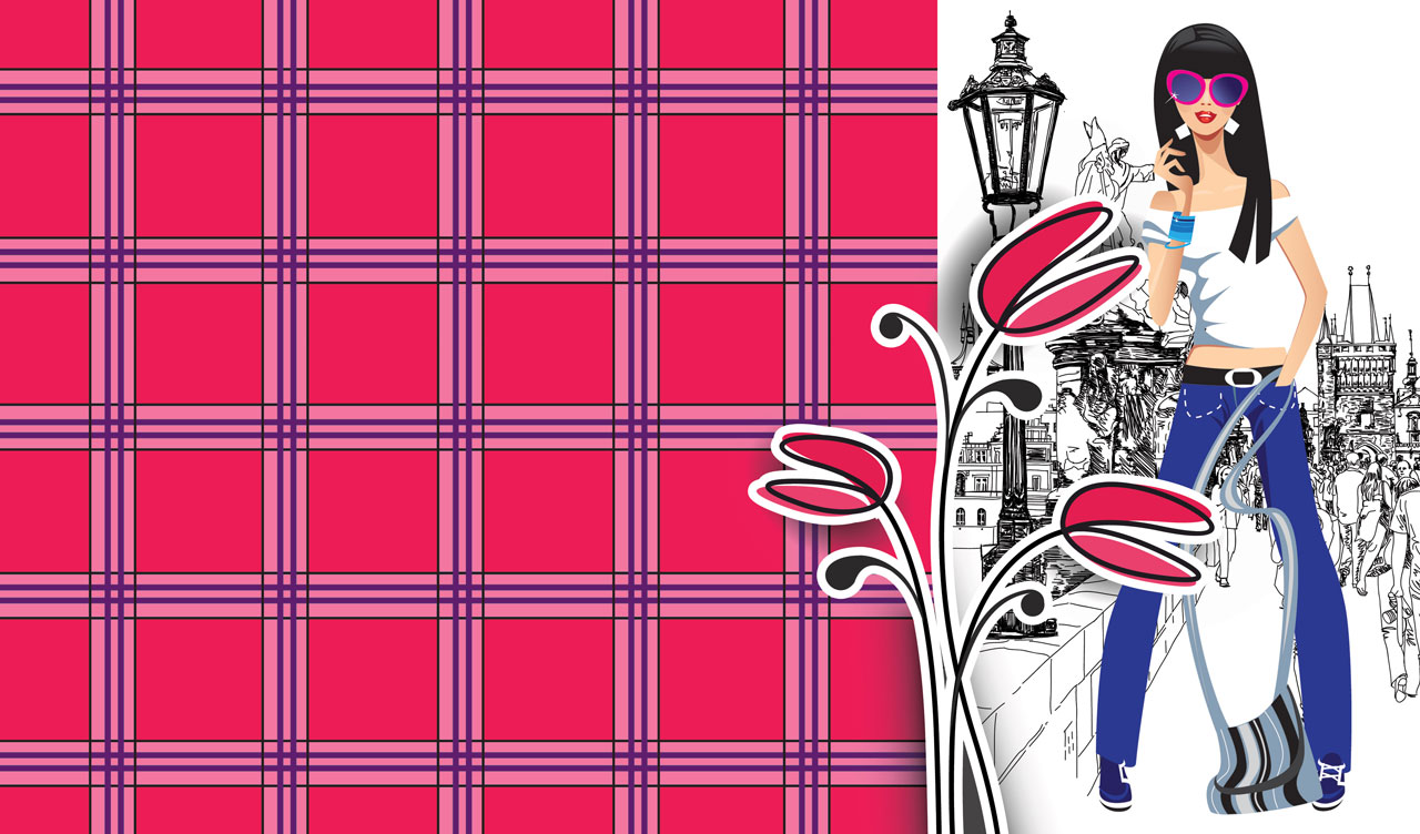1. Stylish blonde with a blue backpack against the background of a city sketch 2. Stylish brunette with a black purse against the background of a city sketch 3. Stylish blonde in a red dress against the background of a city sketch 4. Stylish brunette girl with a hippie bag against the background of a city sketch
