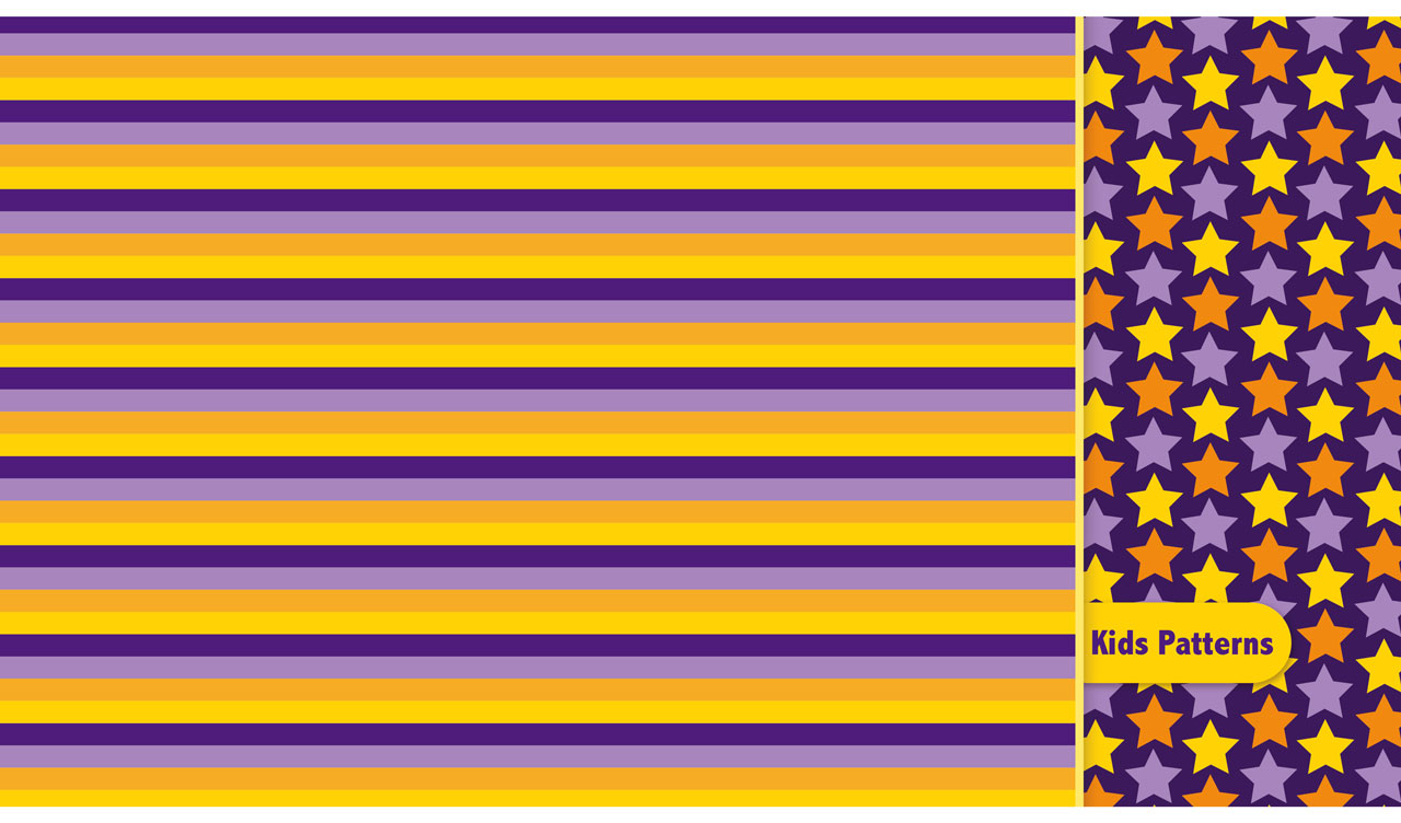 5. Kids seamless pattern with colorful stripes and stars on a purple side panel