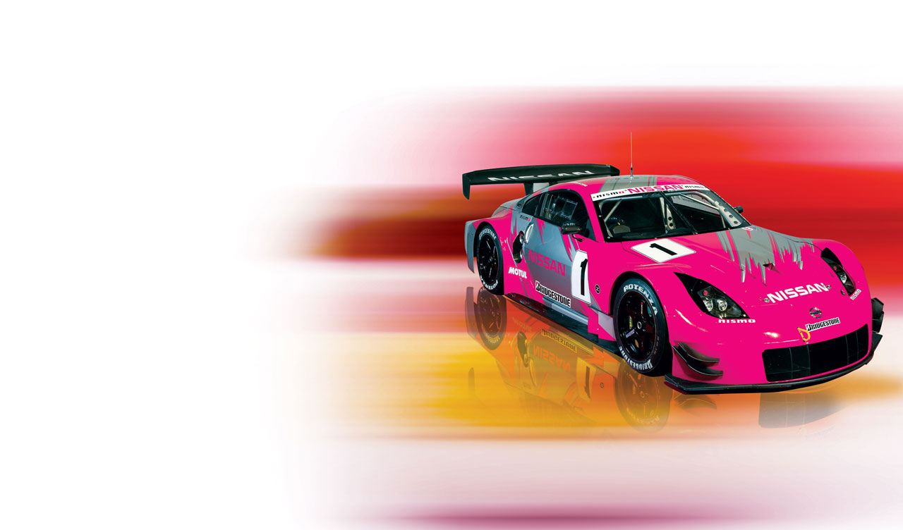 3. Side shot of a fuchsia coupe with grey metallic decals on yellow and red
