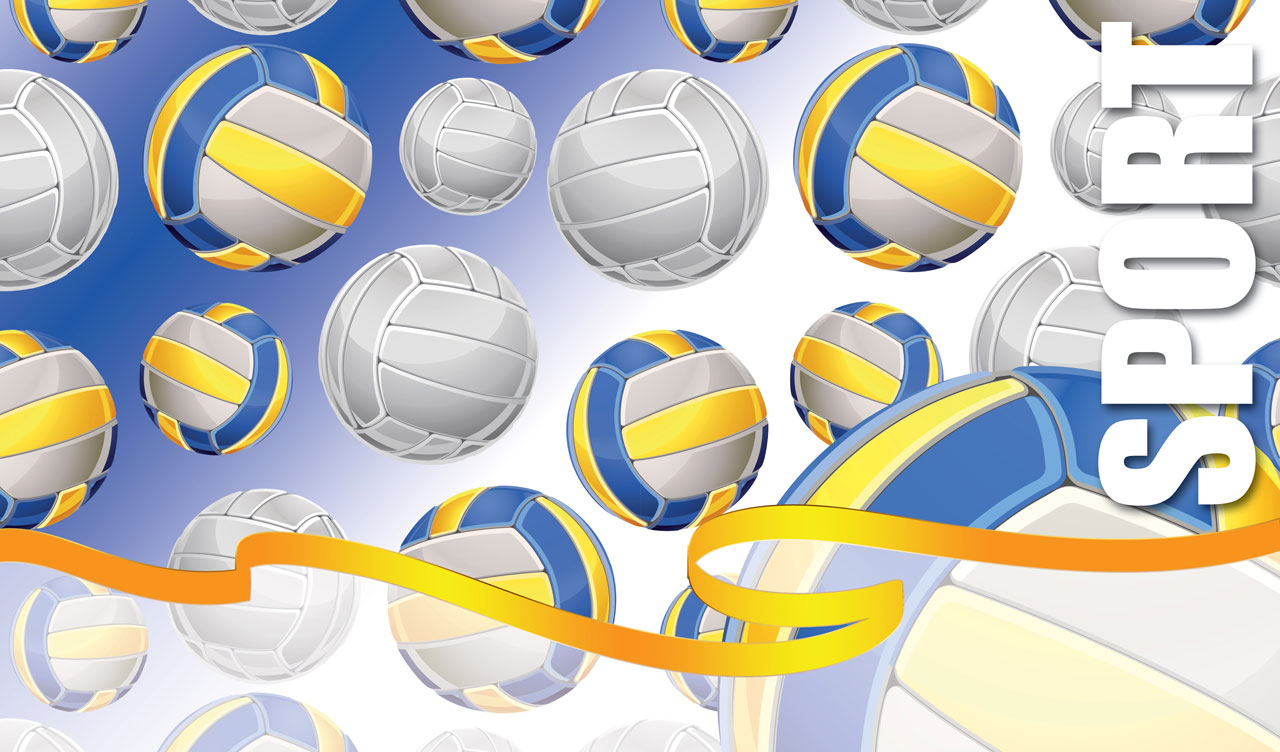 Volleyball seamless pattern against white to blue gradient with a transparent wave design.