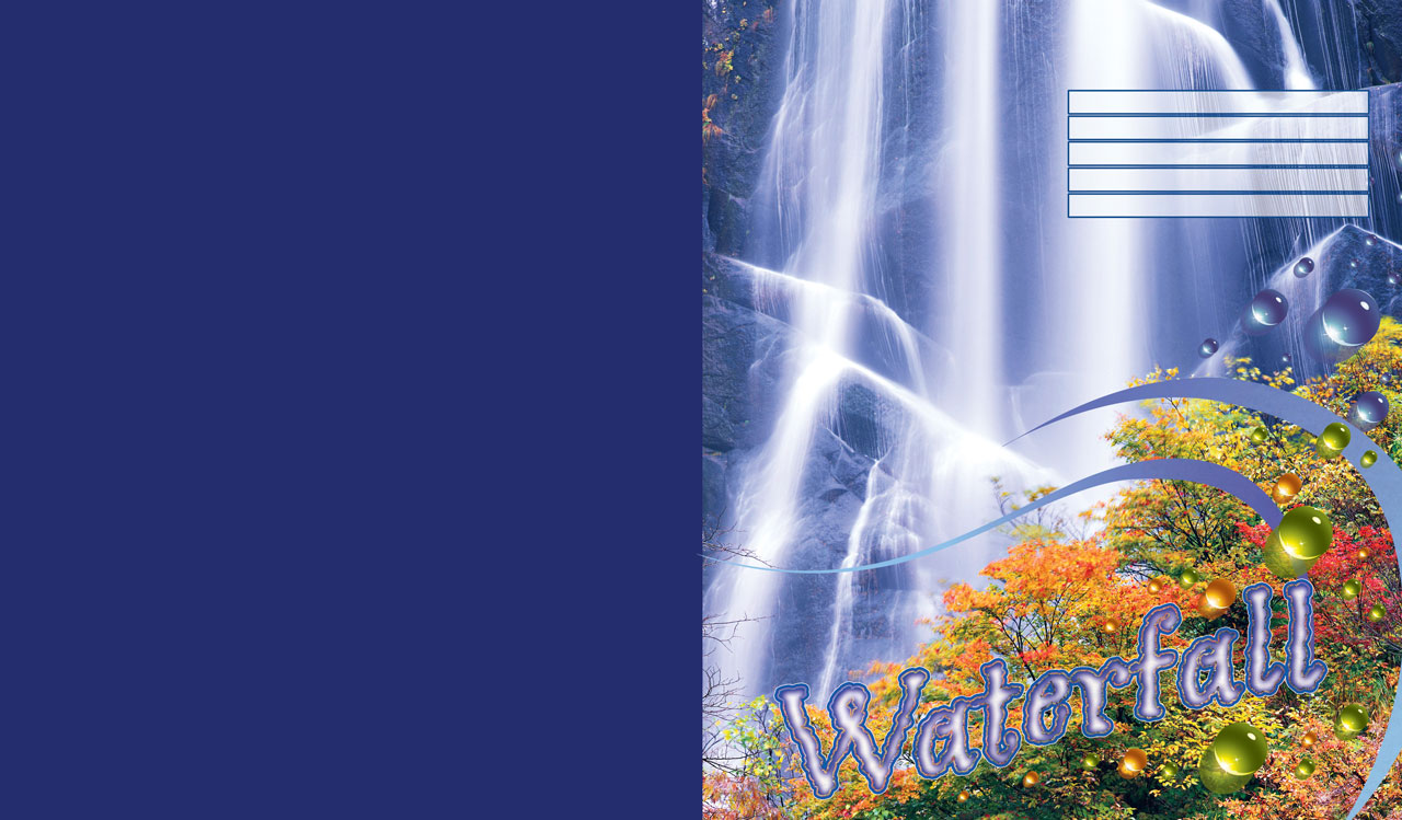 2. Yellow trees over the waterfall from bubbling river and balls decor over the flow