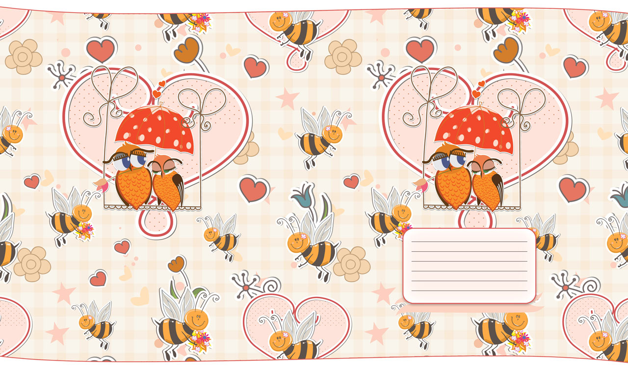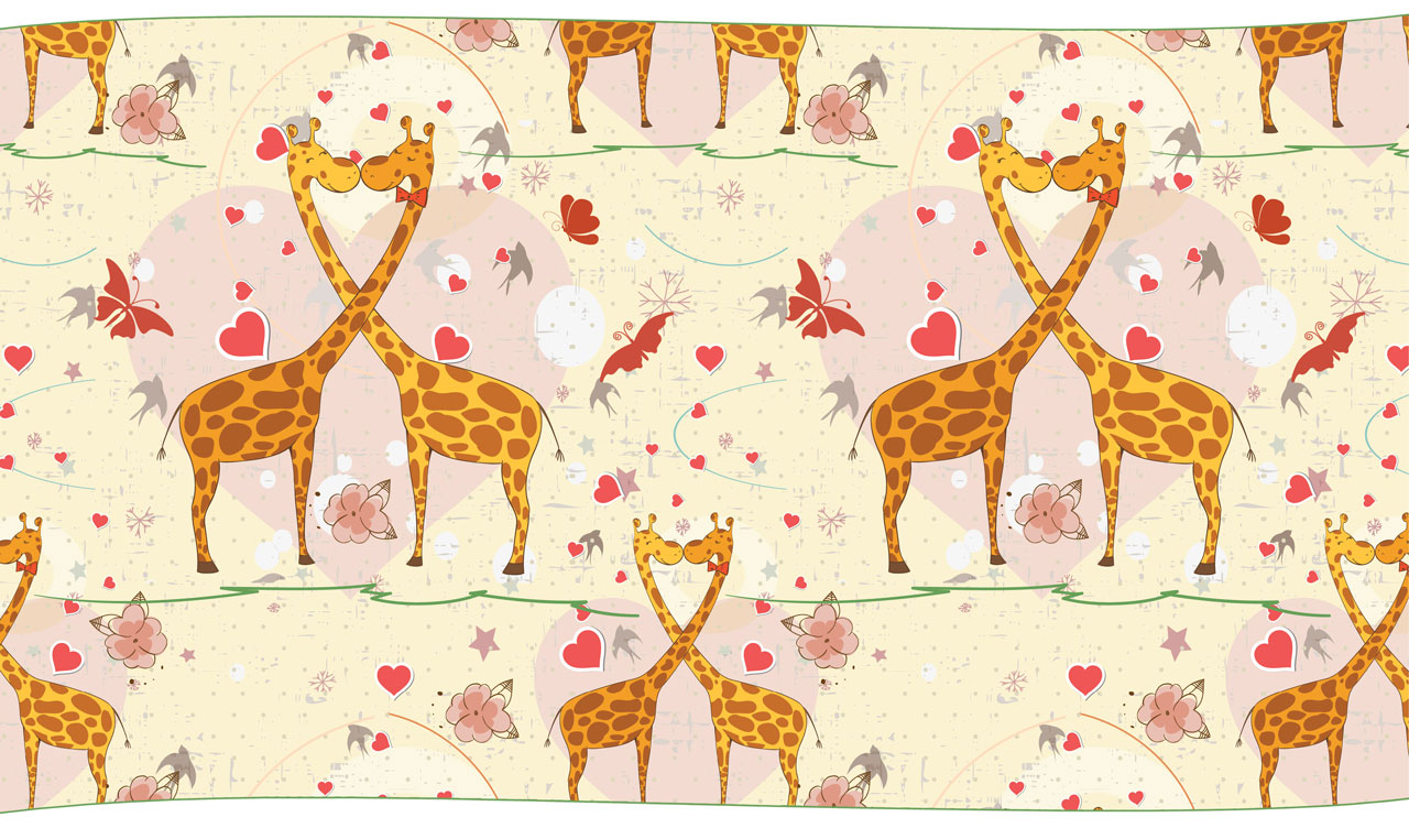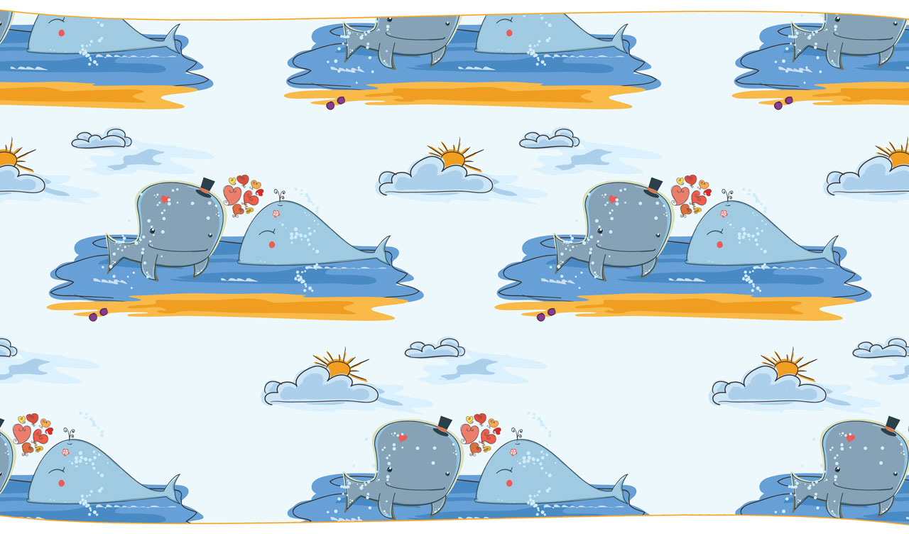 1. Seamless pattern of a whale couple in love on a pastel blue wallpaper 2. Seamless pattern of a mouse couple in love on a pastel yellow-beige wallpaper 3. Seamless pattern of a giraffe couple in love on a pastel yellow wallpaper 4. Seamless pattern of an owl couple in love on a pastel beige wallpaper