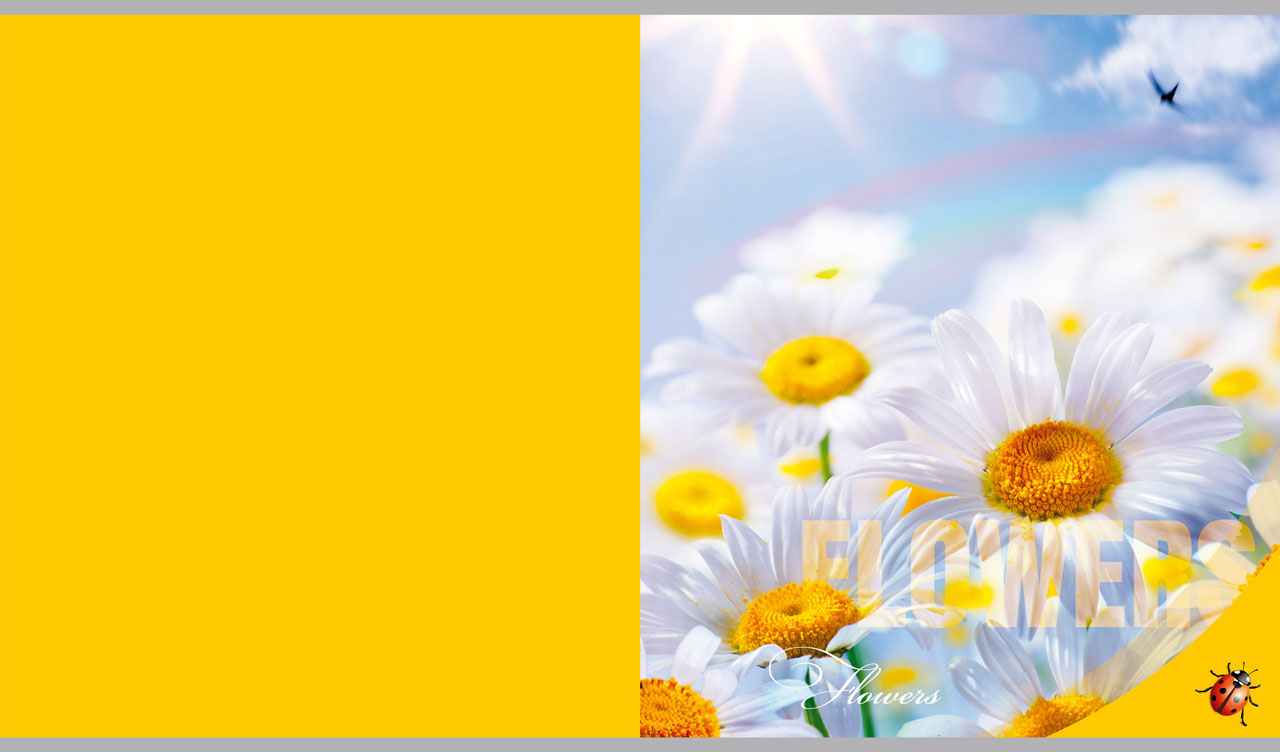 Close up of white chamomile against a summer sky with bokeh effect and a lady bug on a yellow monochrome.