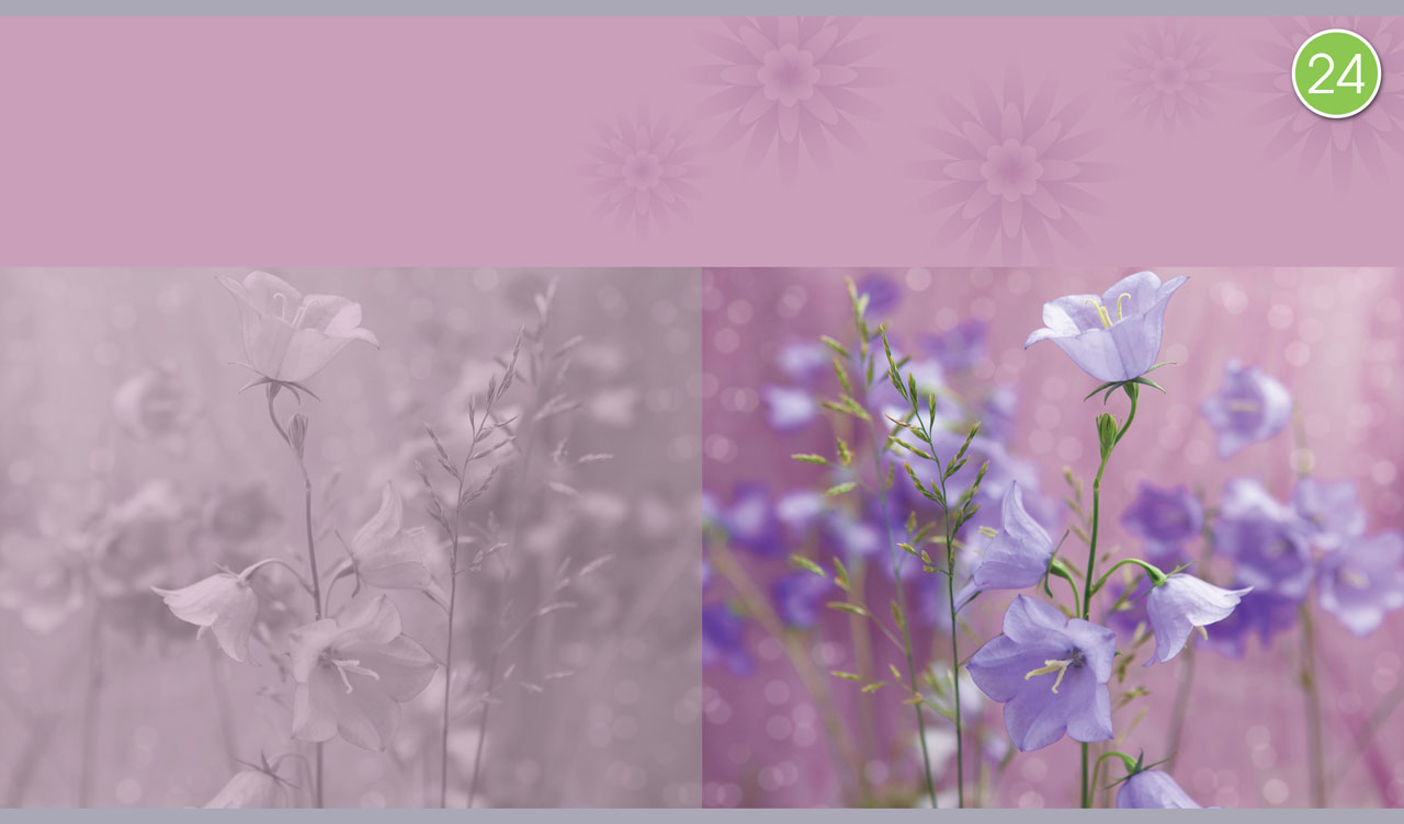 1. Wildflower meadow with cosmos flowers on a light pink floral background 2. Wildflower meadow with yellow daisies on a light violet floral background 3. Wildflower meadow with violet harebell on a light purple floral background 4. Wildflower meadow with red poppies on a light olive floral background