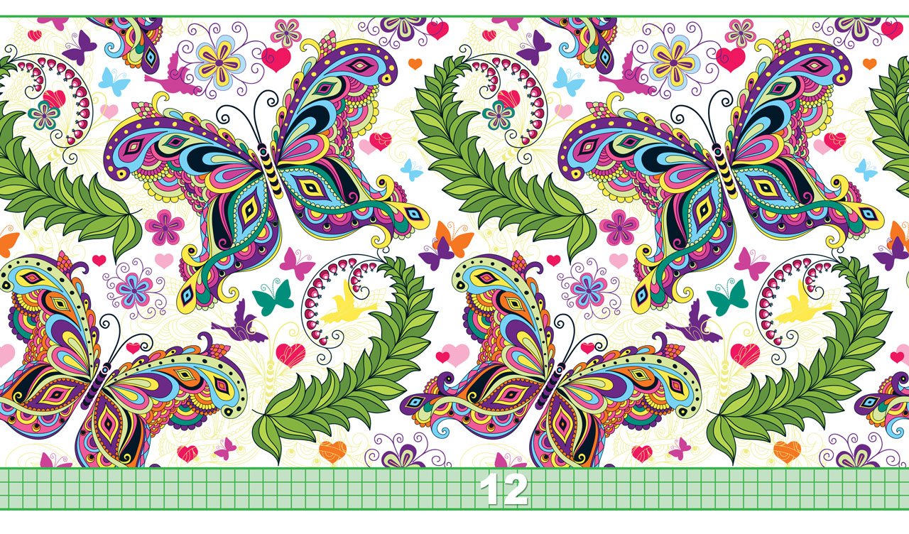 1. Seamless pattern design of floral butterflies and dragonflies in hues of pink 2. Seamless pattern design of butterflies and flowers in hues of purple 3. Seamless pattern design of vibrant butterflies and leaves in hues of green 4. Seamless pattern design of butterflies and green vines in hues of pastel red