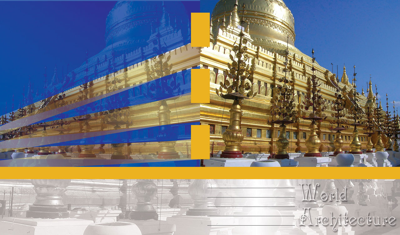 1. Parish Church of Saint Sebastian with old boardwalk bridge in the green hills 2. Bronze old lion statue on a pedestal in the Forbidden City in Beijing 3. Campus of the University of Tampa outdoor in sunlight with sidewalk in a shadow 4. The golden Shwezigon Pagoda in Nyaung-U shining in sun under clear blue sky