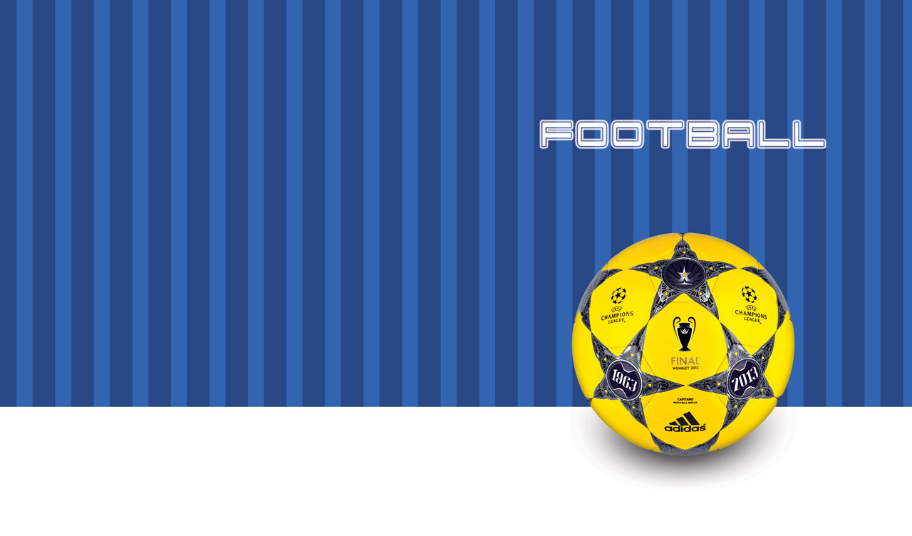 Yellow football with grey stars against a navy-blue striped backdrop and white footer.